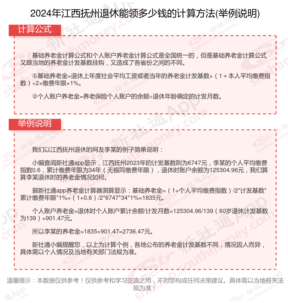 江西抚州社保退休能领多少钱?(在线计算举例说明)