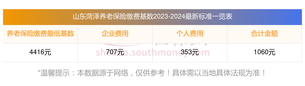 山东菏泽养老保险缴费基数2023-2024最新标准 一个月要交多少钱?