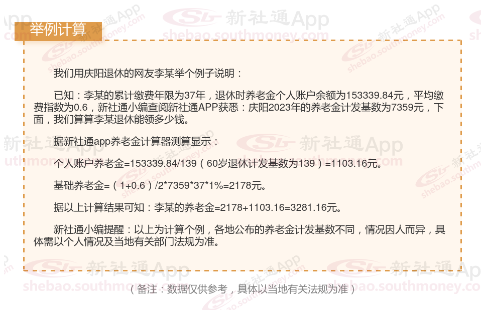 庆阳退休人员退休金计算方法: