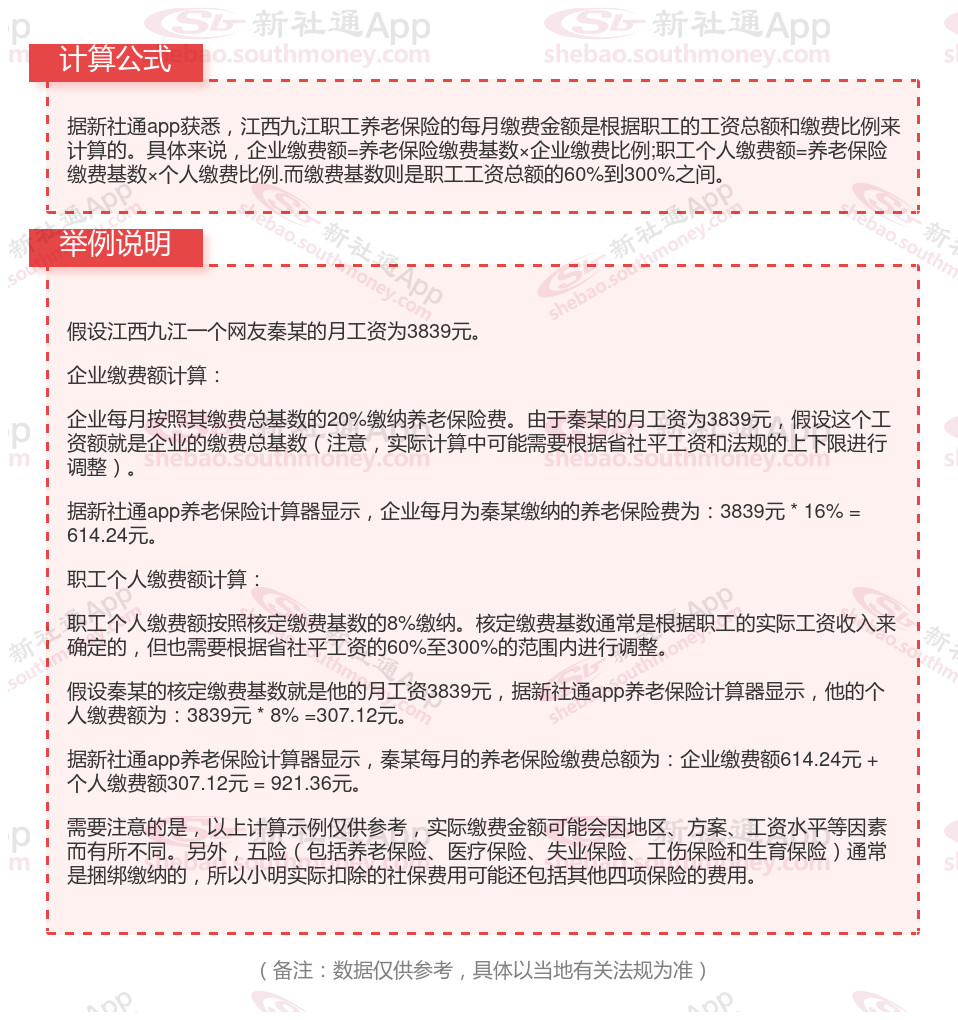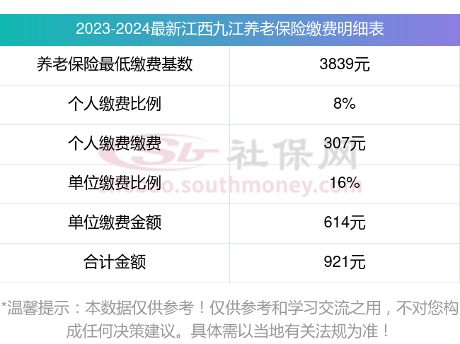 江西九江养老保险缴费基数2023-2024年最新标准(最低)要交多少钱一个月?