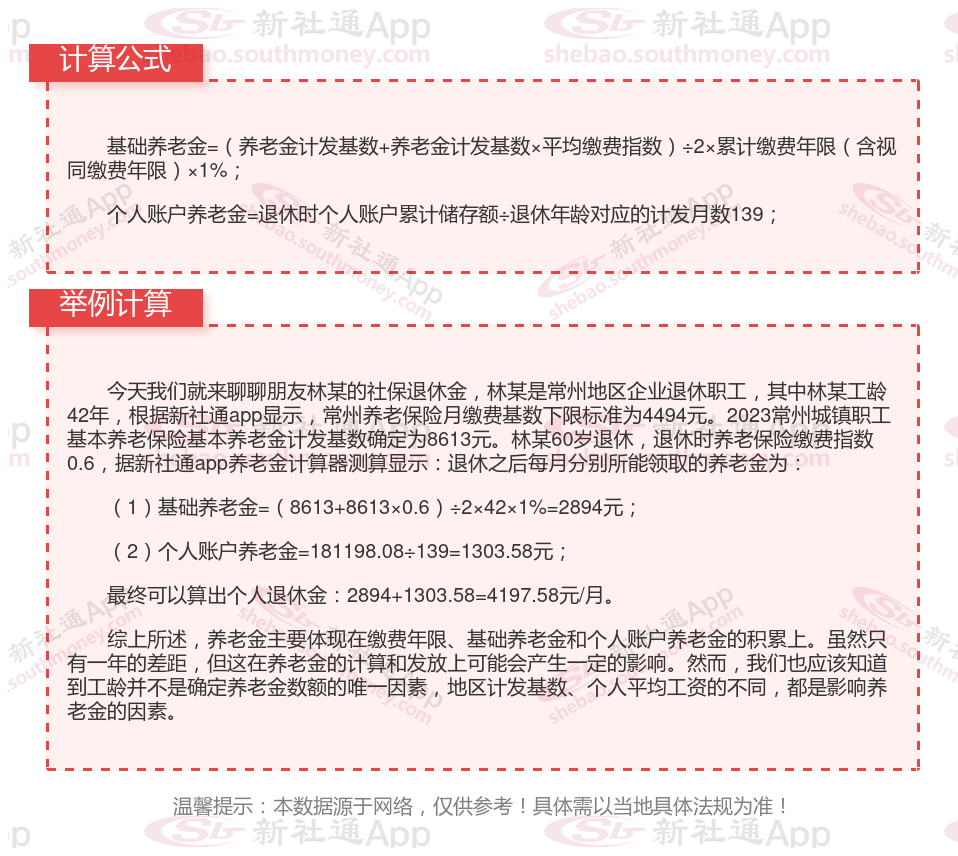 常州退休人员养老金计算方法: