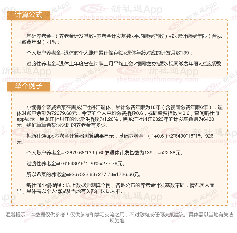黑龙江牡丹江养老金计算公式2024年计算方法(在线计算器)