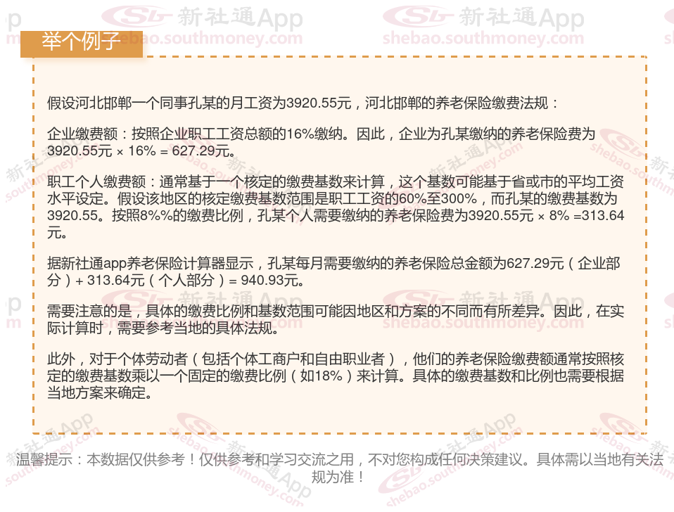 河北邯郸养老保险缴费基数2023-2024年最新标准(最低)要交多少钱一个月?