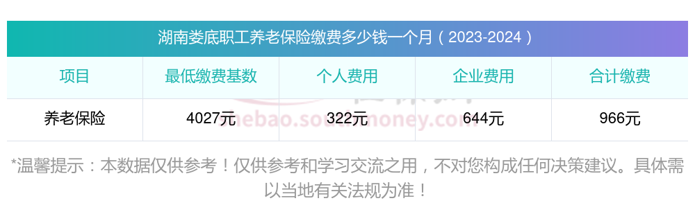 湖南娄底养老保险缴费基数2023-2024最新标准如下