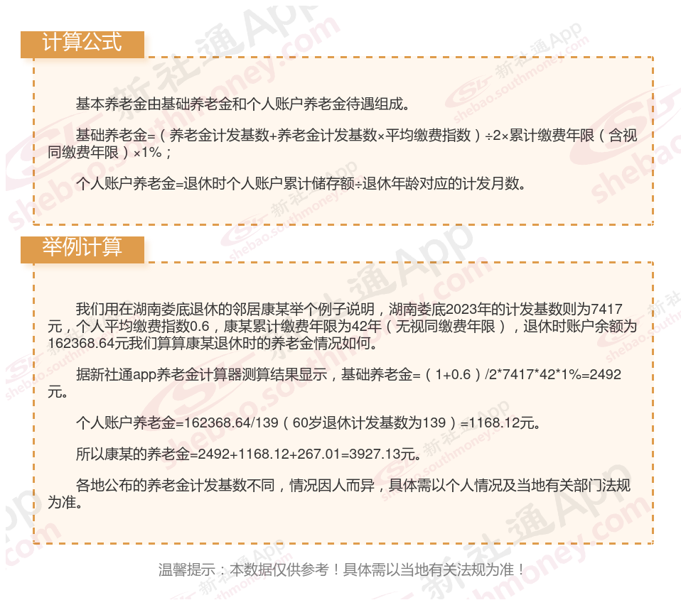 湖南娄底社保退休能领多少钱?(在线计算举例说明)