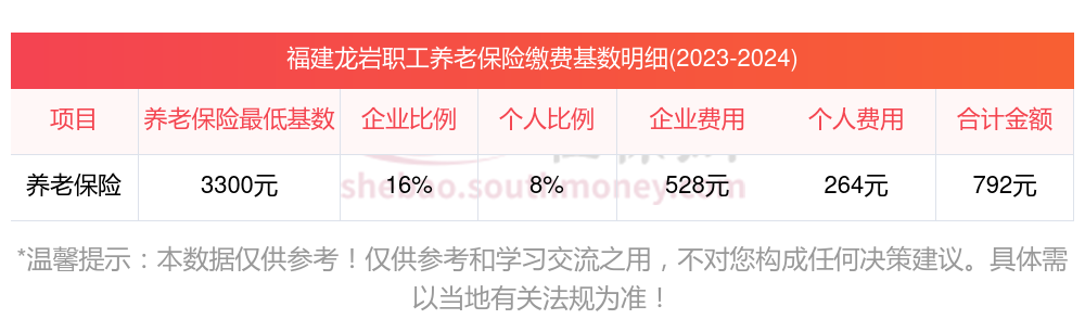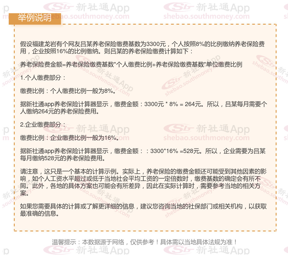 养老保险一个月要交多少钱?福建龙岩缴费基数2023-2024年最新标准(最低)
