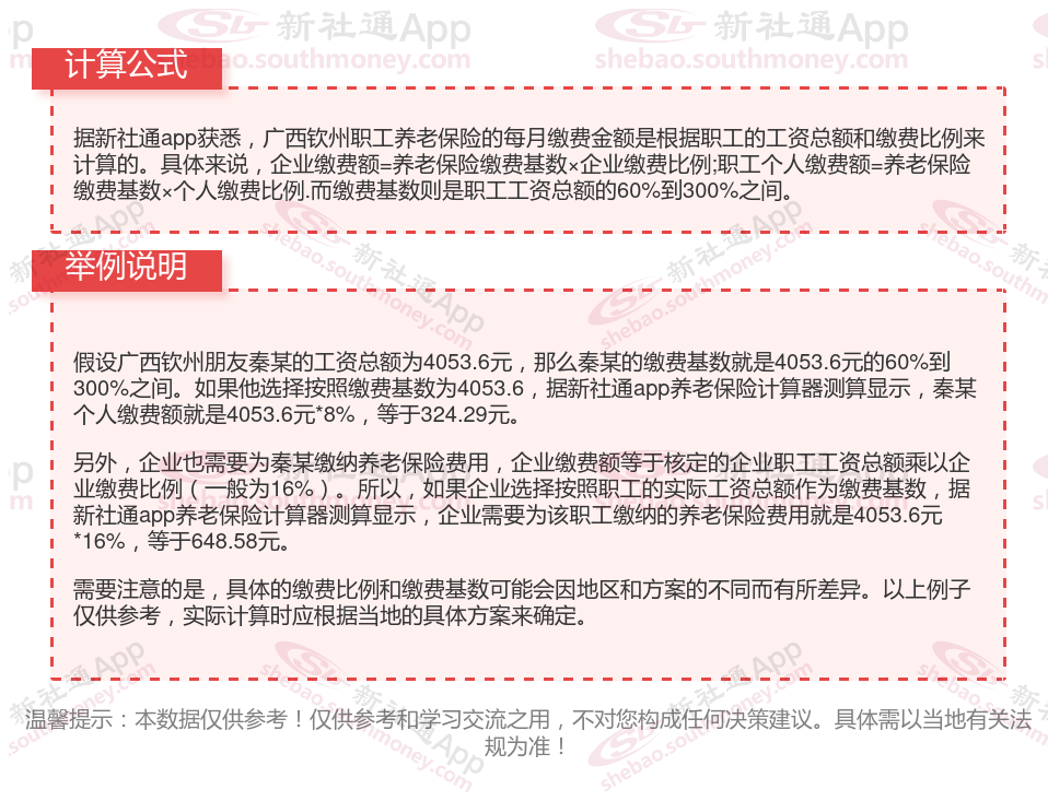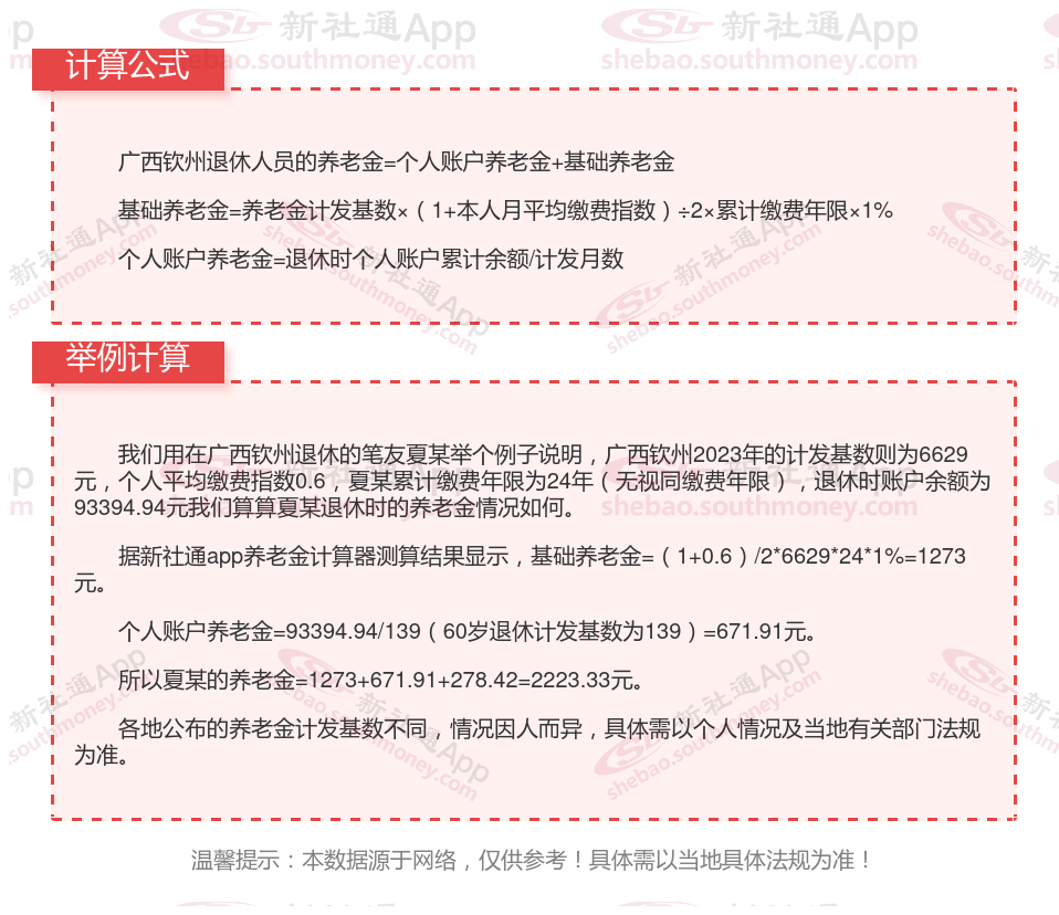 广西钦州养老金计算公式2024年计算方法(在线计算器)