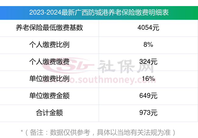养老保险一个月要交多少钱?广西防城港缴费基数2023-2024年最新标准(最低)