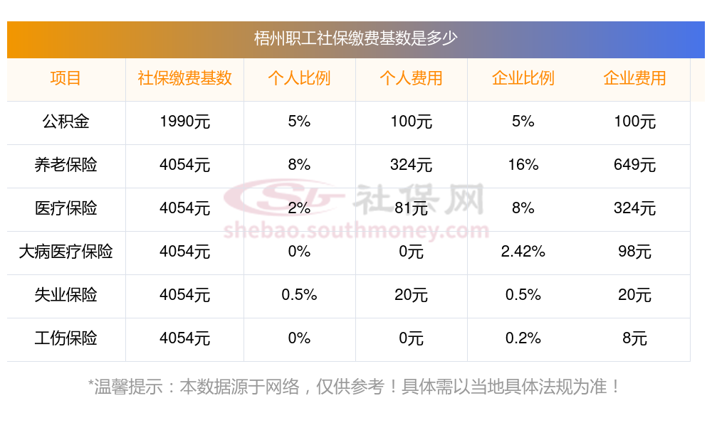 梧州社保缴纳明细如下: