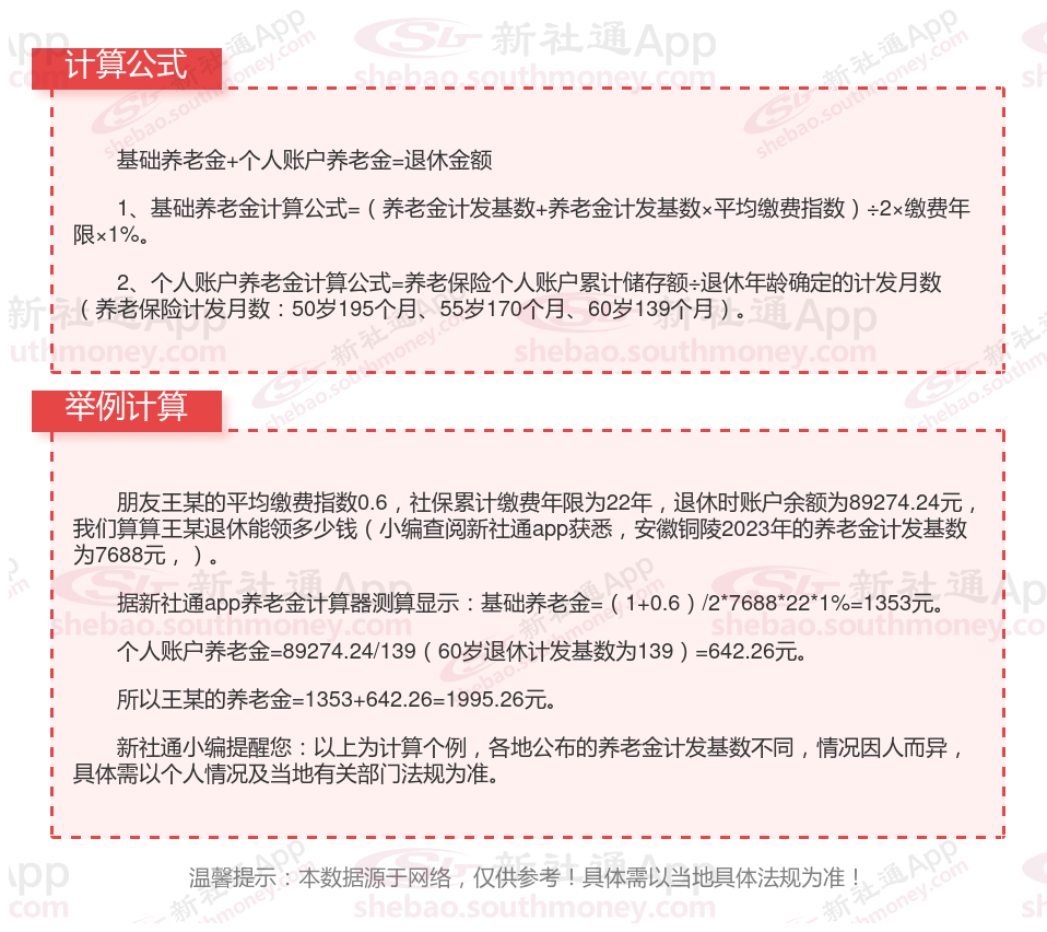 安徽铜陵养老保险退休能领多少钱?(在线计算举例说明)