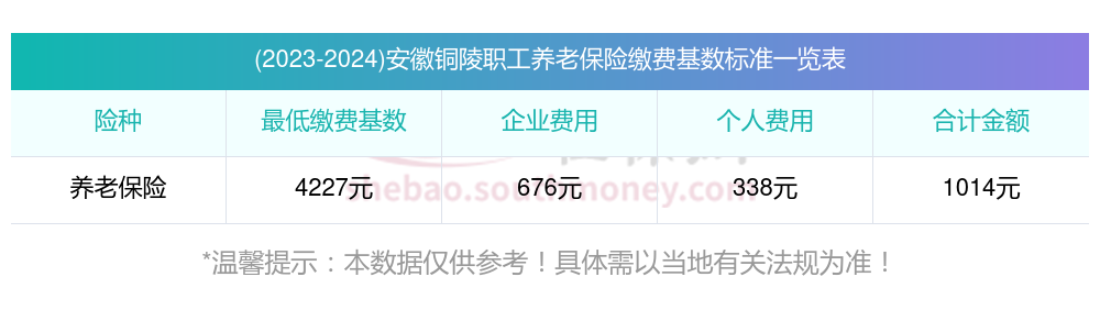 安徽铜陵养老保险缴费基数2023-2024年最新标准(最低)一个月要交多少钱?举例说明