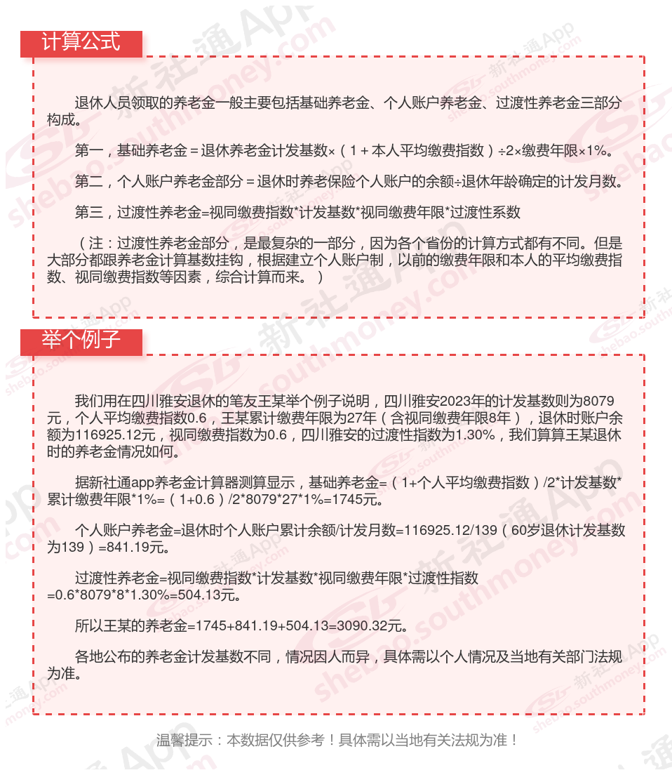 四川雅安社保退休能领多少钱?(在线计算举例说明)