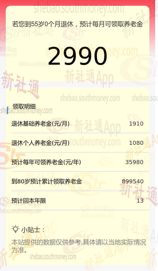 新社通app养老金计算器养老金估算详解
