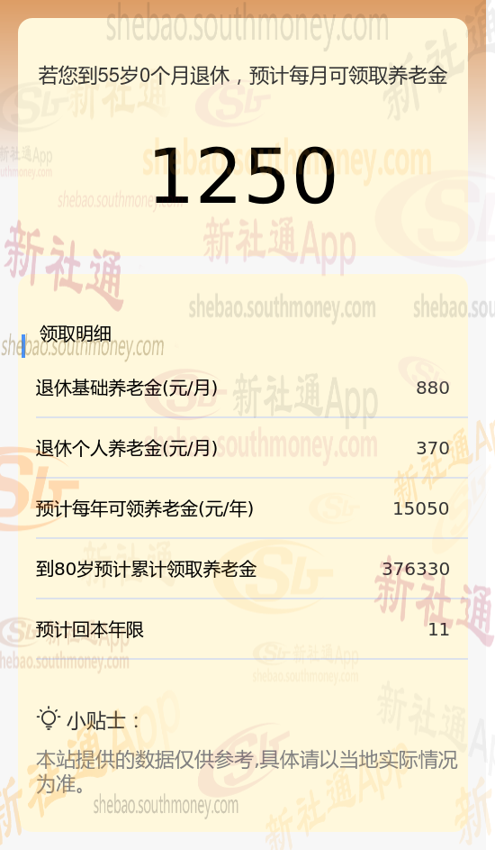 新社通app养老金计算器计算所得: