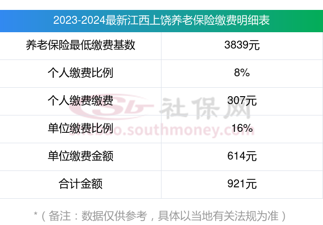 江西上饶养老保险缴费基数2023-2024年最新标准(最低)要交多少钱一个月?