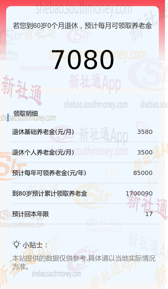 新社通app养老金计算器计算所得: