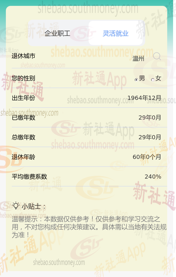 和新社-app一起看个例子,温州工龄29年养老退休金如何计算?