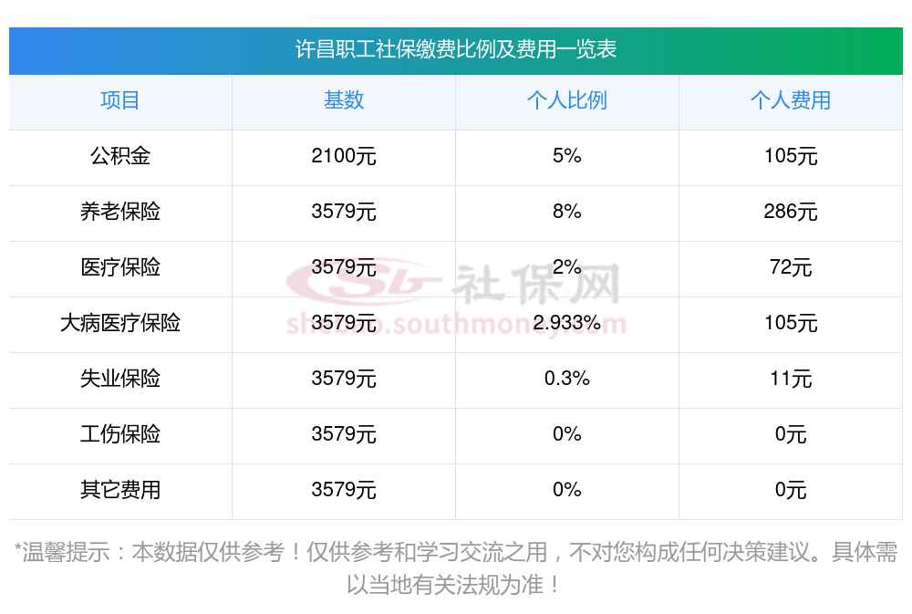 2024年许昌社保缴费多少钱?下表是2023-2024年许昌社保费用明细参考,新社通app-社保缴费查询工具提供的最新数据如下: