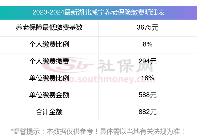 湖北咸宁养老保险缴费标准2023-2024最新消息