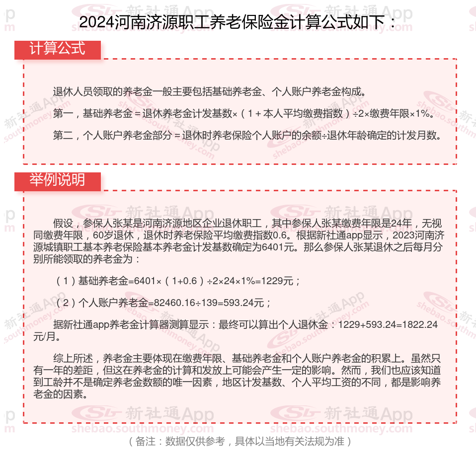河南济源养老保险退休能领多少钱?(在线计算举例说明)