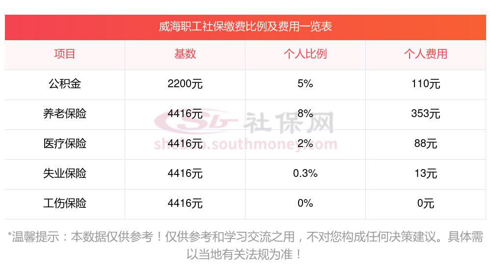 2024年威海社保缴费多少钱?下表是2023-2024年威海社保费用明细参考,新社通app-社保缴费查询工具提供的最新数据如下: