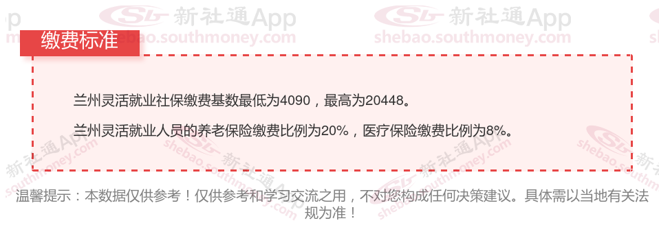 兰州灵活就业社保缴费基数最低为4090,最高为20448。
