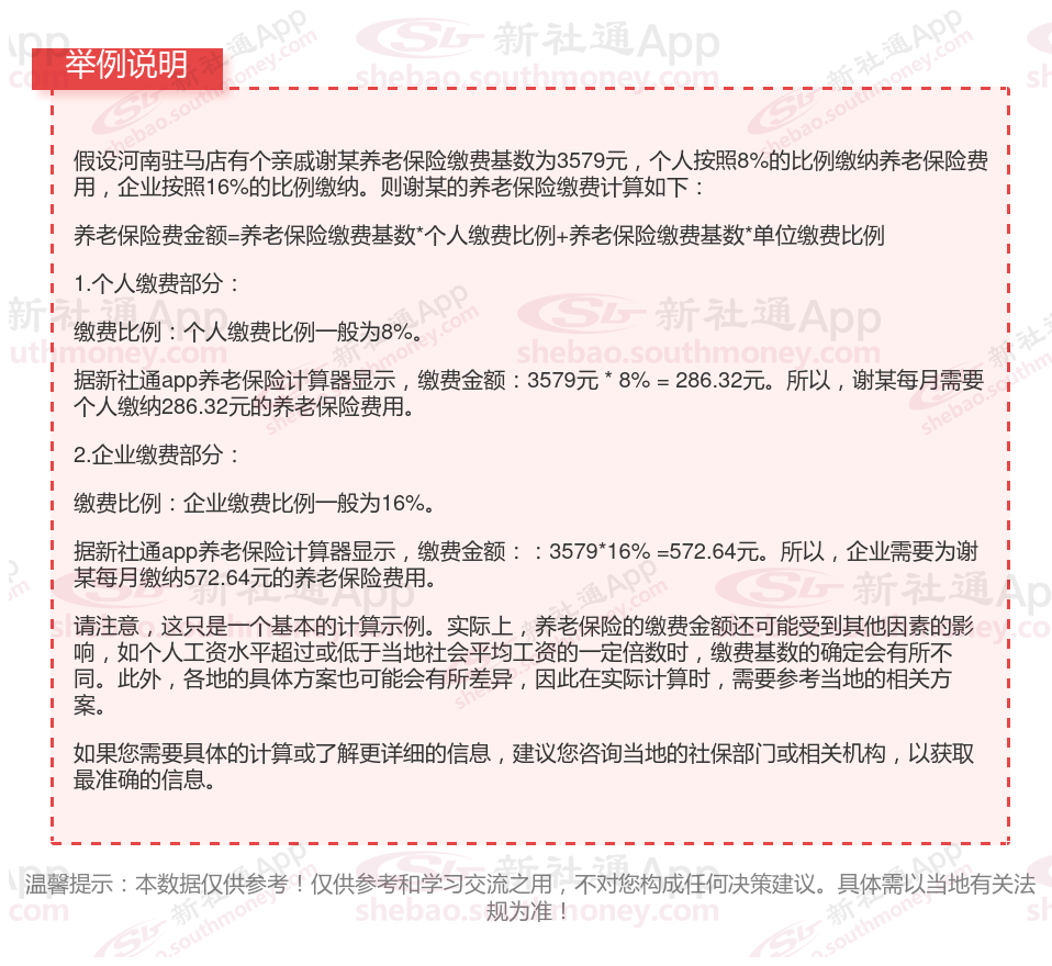 据新社通app显示,2023-2024年河南驻马店职工养老保险的缴费标准是根据缴费基数来确定的: