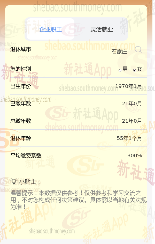 新社通app养老金计算器计算所得: