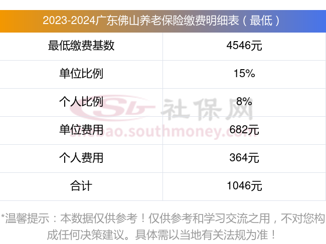 广东佛山养老保险缴费比例及基数标准2023-2024最新消息