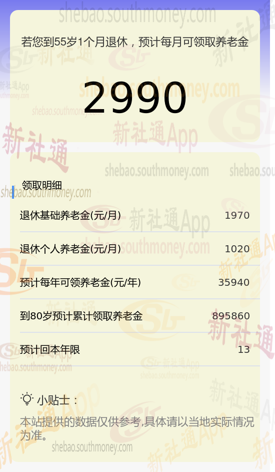 现在,我们来计算一下每月可领取的养老金总额。只需将基础养老金的1970元与个人养老金的1020元相加,得到的总数就是每月可以领取的养老金,大约是2990元。这个数字象征着您退休后每月可以期待的一笔稳定收入。