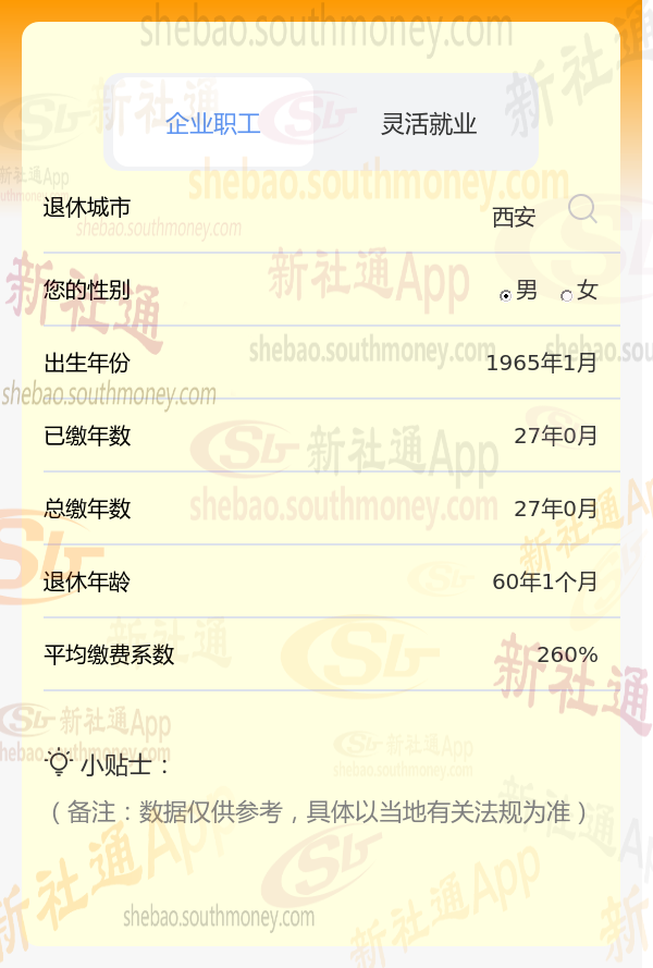 新社通app养老金计算器计算所得: