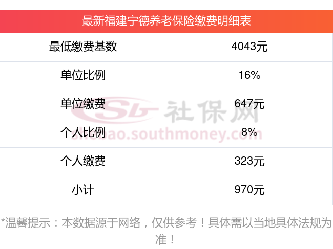 福建宁德养老保险缴费基数2023-2024年最新标准(最低)