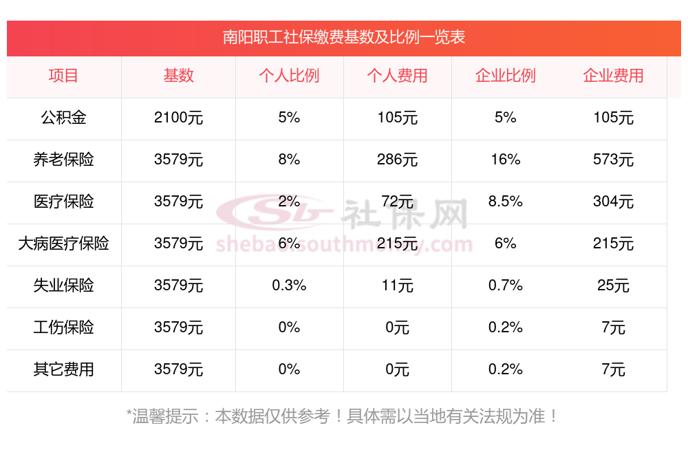 2025年南阳社保缴费多少钱?下表是2024-2025年南阳社保费用明细参考,新社通app-社保缴费查询工具提供的最新数据如下: