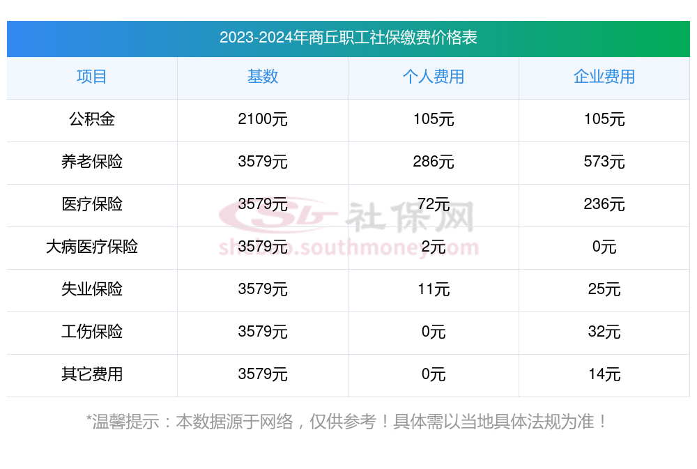 商丘社保缴纳情况是怎样的?一起和新社丫丫一起来看看下面的明细表: