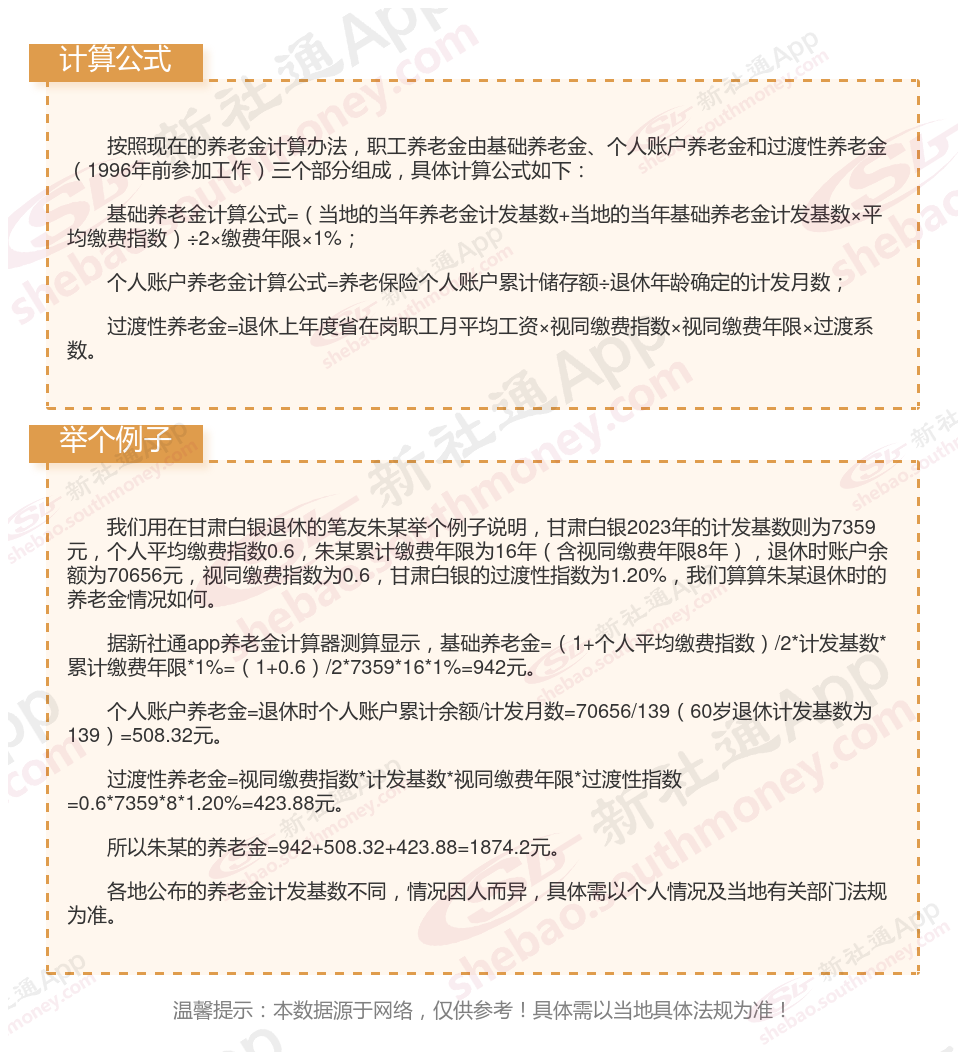 甘肃白银养老保险退休能领多少钱?(在线计算举例说明)