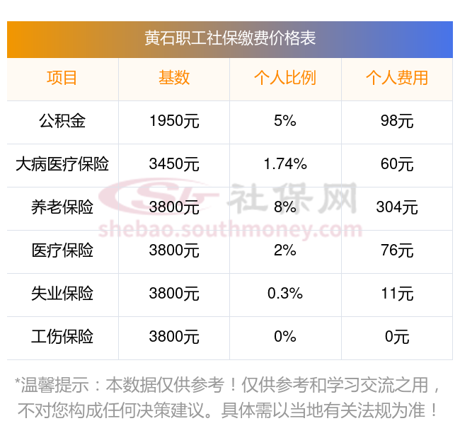 2025年黄石社保缴费多少钱?下表是2023-2024年黄石社保费用明细参考,如下: