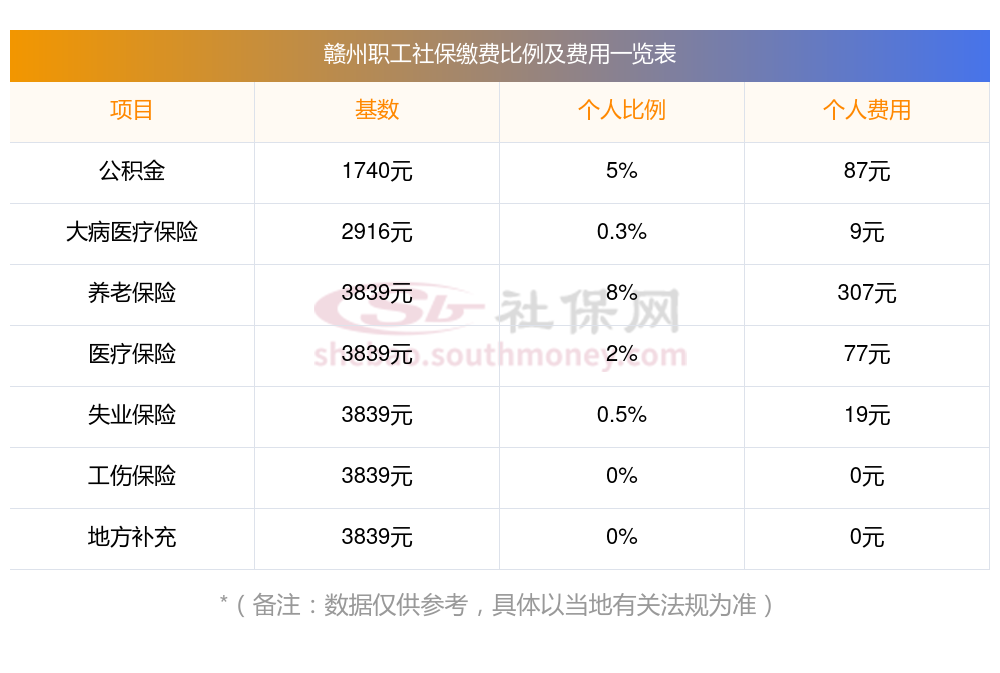 赣州社保缴纳情况是怎样的?一起和新社君一起来看看下面的明细表:
