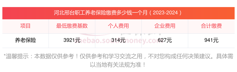 河北邢台养老保险缴费基数2023-2024最新标准,一个月要交多少钱?
