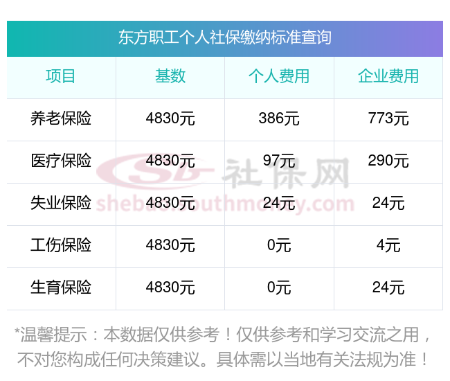 东方五险一金交多少钱一个月?下面和新社君一起来看看2024-2025年东方最低标准社保费用明细参考,新社通app-社保缴费查询工具提供的最新数据如下: