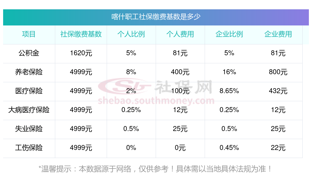 公司五险一个月交多少钱 公司加个人是多少?下表是2024-2025年喀什社保费用明细参考,新社通app-社保缴费查询工具提供的最新数据如下: