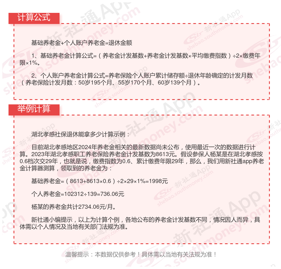 湖北孝感社保养老保险交满能领多少钱?(在线计算举例说明)