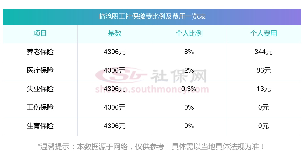 2025年临沧社保缴费多少钱?下表是2024-2025年临沧社保费用明细参考,新社通app-社保缴费查询工具提供的最新数据如下: