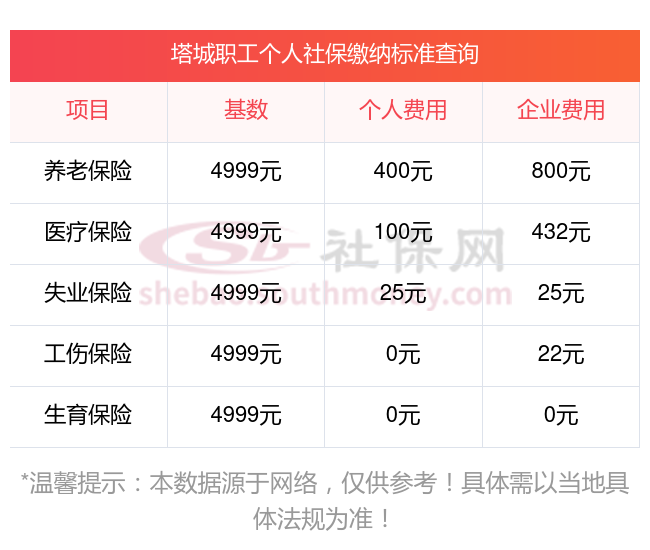 2025年塔城社保缴费多少钱?下表是2023-2024年塔城社保费用明细参考,如下: