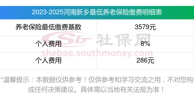 河南新乡养老保险缴费基数2023年最新标准(最低)