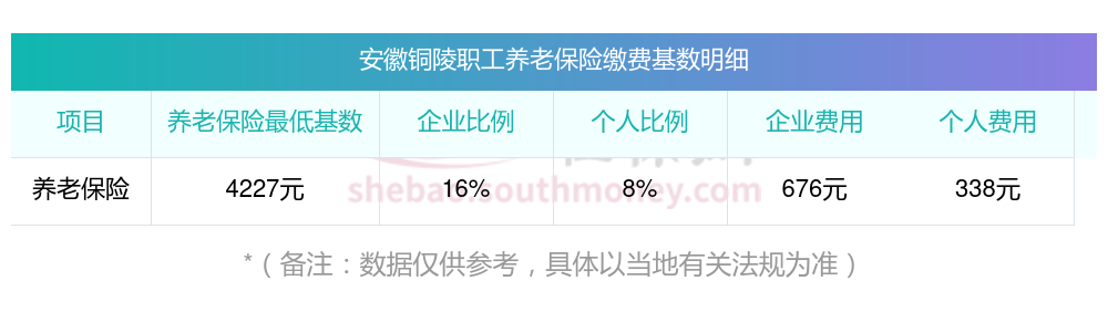2023-2024年安徽铜陵养老保险缴费比例及基数标准(最新)