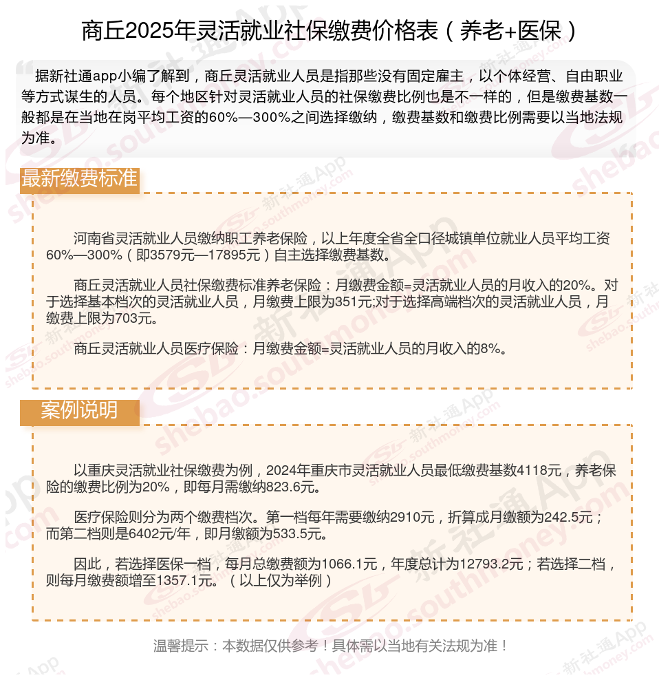 商丘灵活就业人员基本养老保险缴费基数暂按不低于3579元;