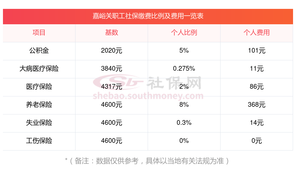 2025年嘉峪关社保缴费多少钱?下表是2024-2025年嘉峪关社保费用明细参考,新社通app-社保缴费查询工具提供的最新数据如下: