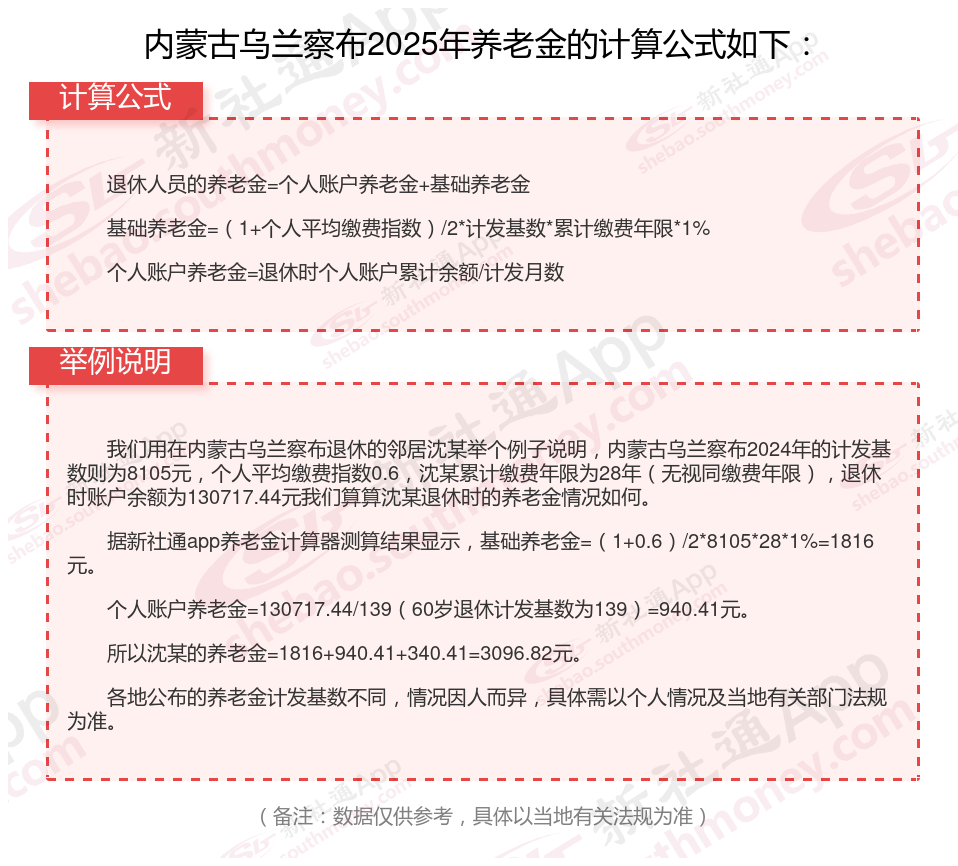 内蒙古乌兰察布养老金计算公式2025年计算方法(在线计算器)