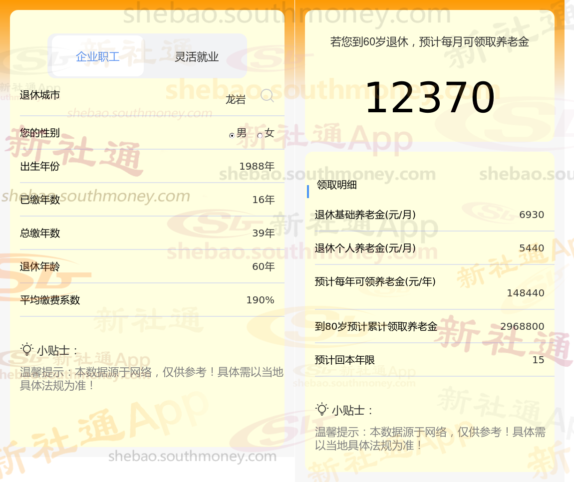 通过新社通APP-养老金计算所得:退休城市、出生年份、退休年龄、缴费系数都相同的情况下,社保缴费年限累计39年时,计算如下: