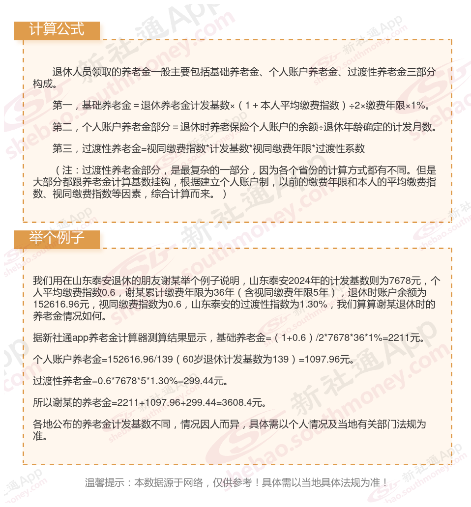 山东泰安养老金计算公式2024年计算方法(在线计算器)
